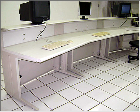 - Base com rodízios e dois vazados na parte posterior para passagem de cabos, sendo este nosso padrão.