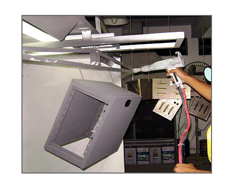 - Pintura Epóxi-pó Texturizada nas cores Grafite cód "RAL 13.701", Bege cód "RAL 7032" e Preto Texturizado cód "RAL-HB 13904);