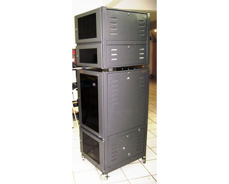 - Rack dividido em duas partes sendo: a inferior com 24 ur's ( + ou - 1200mm ) e a superior com 12 ur's (+/- 700mm).